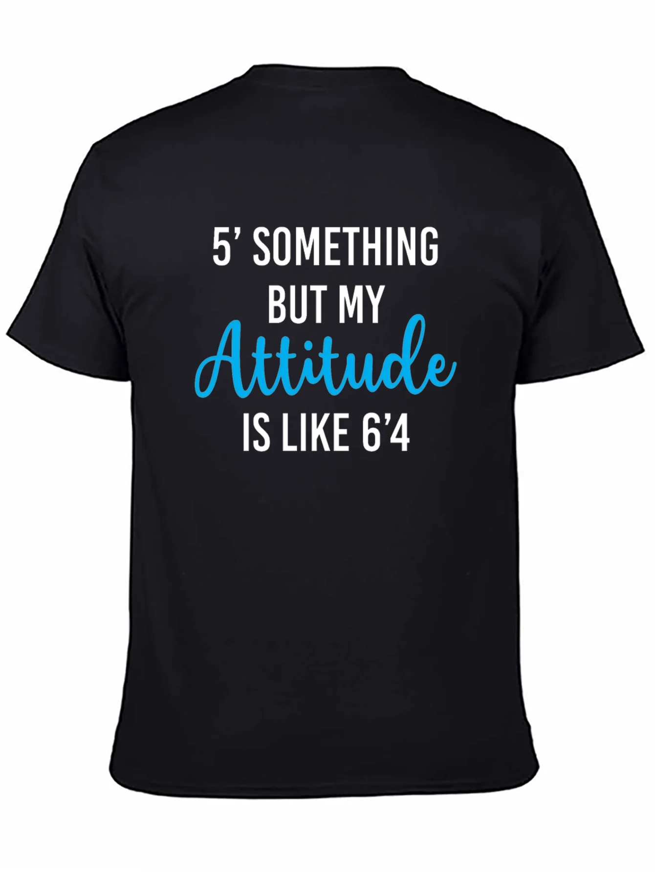 Show off your personality with this hilarious t-shirt! Made from a comfortable, breathable black cotton blend, this tee features a witty slogan: '5' SOMETHING BUT MY Attitude IS LIKE 6'4'. The playful design and bold font make it a fun conversation starter. Perfect for casual outings, social gatherings, or just lounging around, this shirt is sure to turn heads and bring smiles. It's a great gift for anyone with a big attitude and a sense of humor! Get yours today and let your attitude shine!