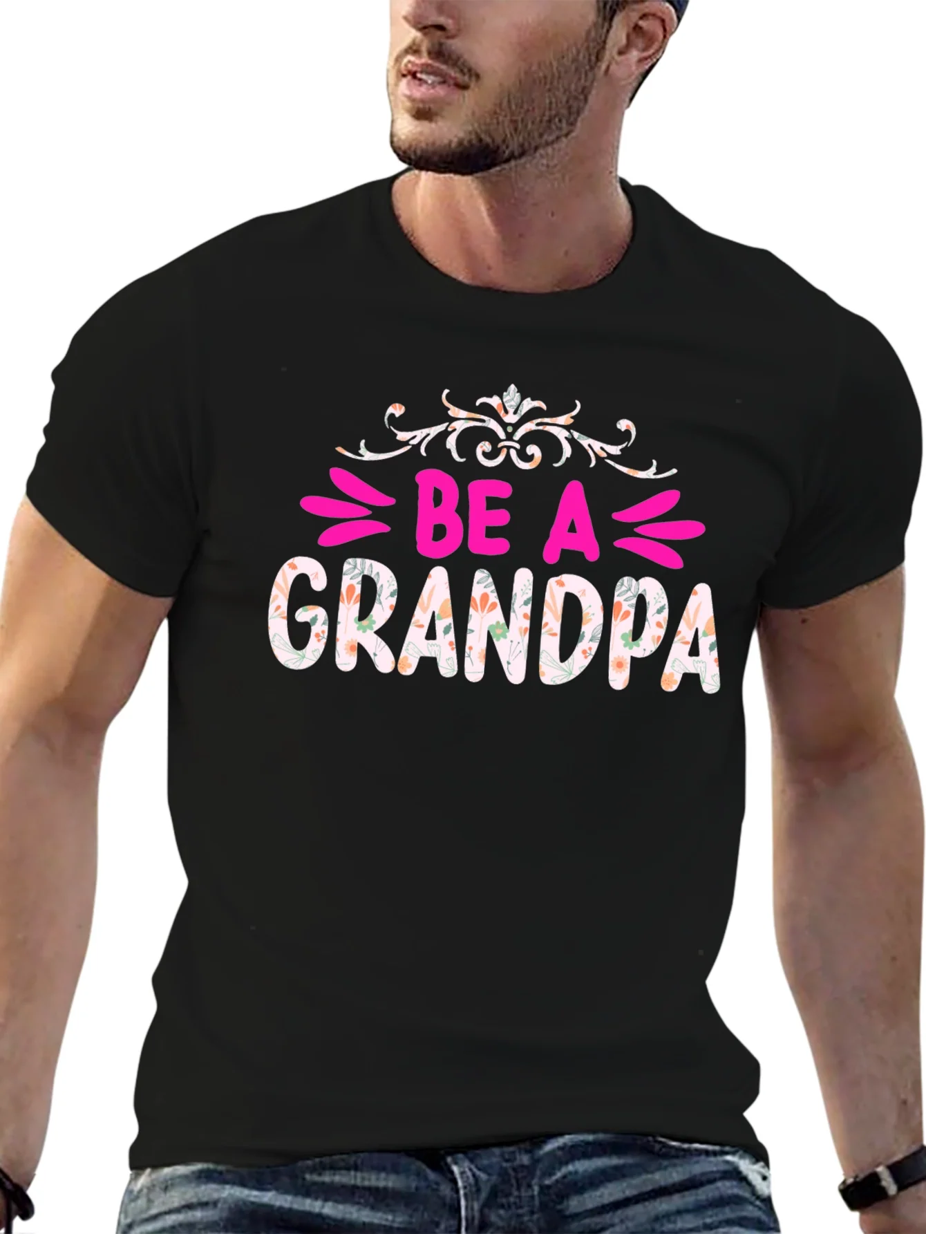 Show off your pride in being a grandpa with this stylish black t-shirt. The shirt features a floral "GRANDPA" text design with a decorative flourish at the top. The phrase "BE A" is written above in a vibrant pink. Made from a soft, comfortable fabric, this tee is perfect for casual wear, family gatherings, or as a thoughtful gift for the best grandpa. The print is eye-catching and unique, making it a standout piece in any wardrobe. Wear it with jeans, shorts, or layer it under a jacket for a cool, casual look. Let everyone know you're a proud grandpa with this awesome tee!