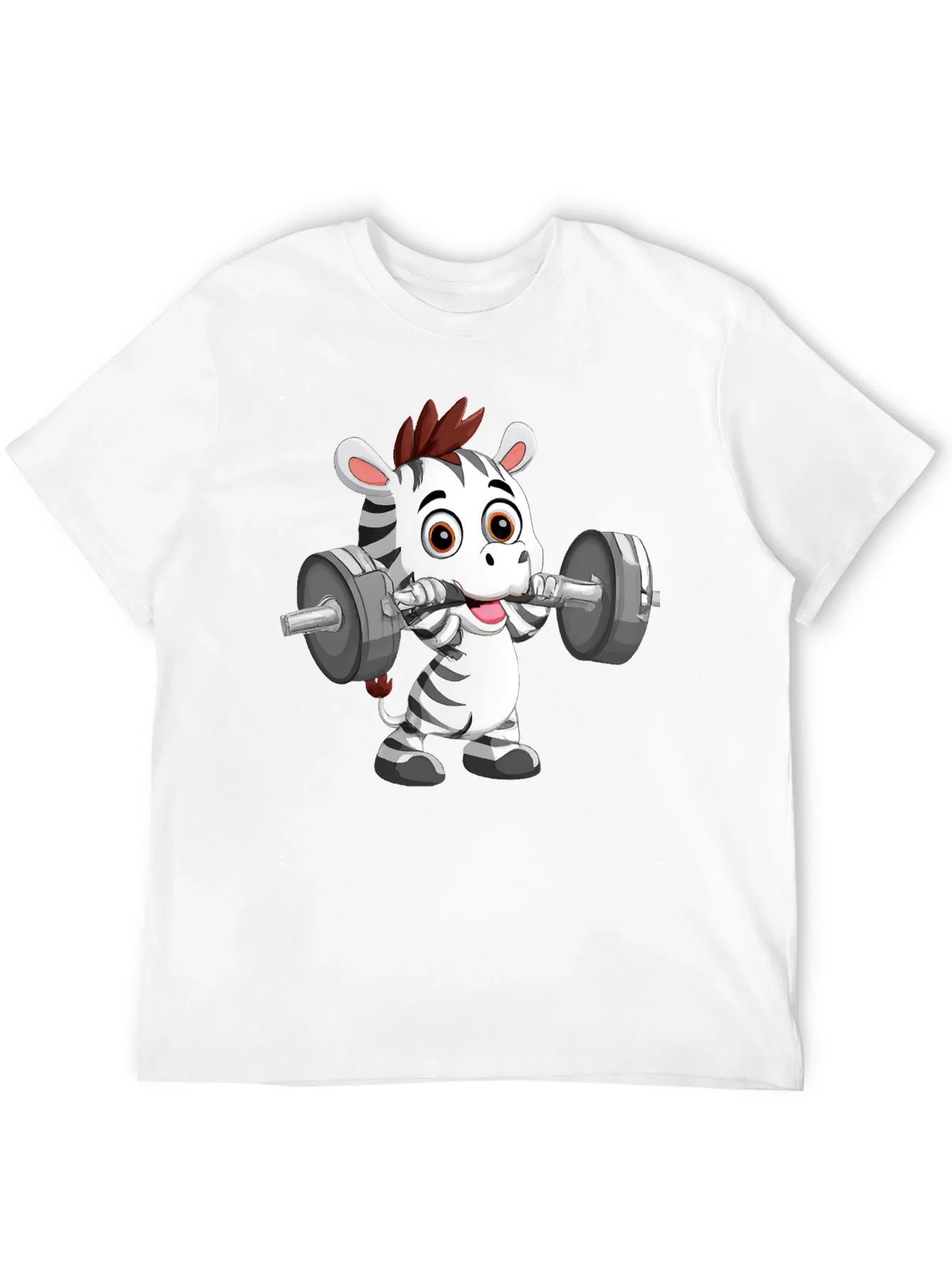Show off your love for fitness and animals with this unique black t-shirt! The shirt features a cartoon zebra lifting a barbell. Made from a comfortable fabric blend, this tee is perfect for casual wear, gym sessions, or as a fun conversation starter. The vivid graphic print stands out against the black backdrop, creating a visually appealing design. It is a great way to showcase your playful side while staying comfortable. Order yours today and add some fun to your wardrobe!
